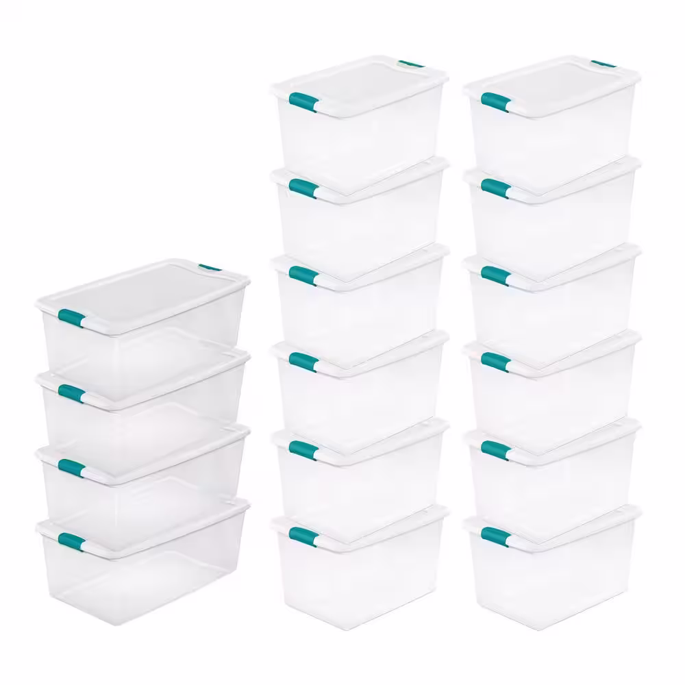 Sterilite 106-Qt. Latching Storage Box in Clear (4-Pack) and 64-Qt. Latching Storage Box in Clear (12-Pack)