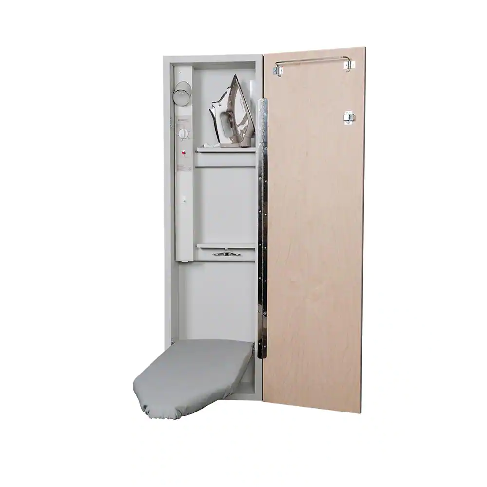 HOUSEHOLD ESSENTIALS Unfinished Oak Wood In-Wall Ironing Board in Unfinished Oak Wood