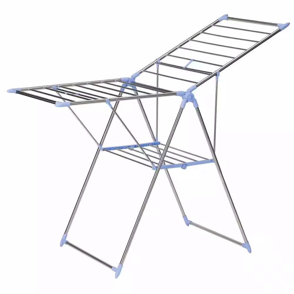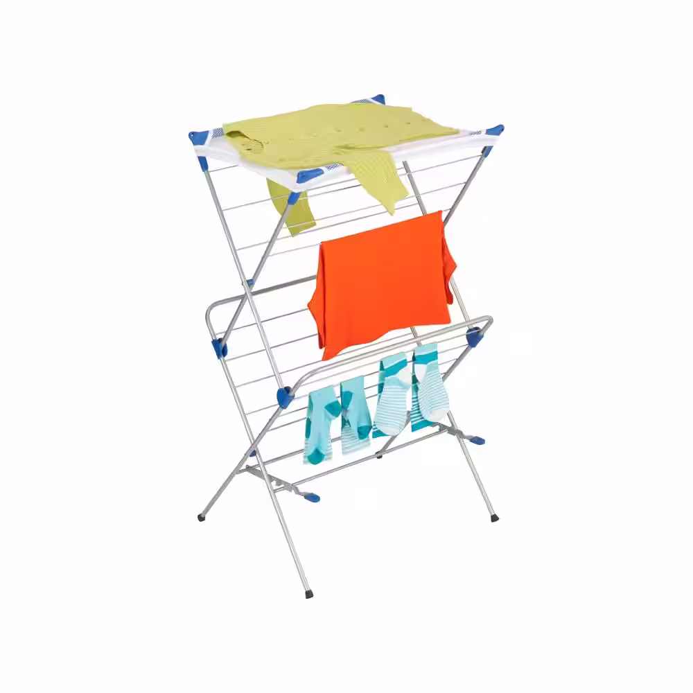 Honey-Can-Do 17 in. W x 41.5 in. H Silver and Blue Steel 2-Tier Mesh Top Drying Rack