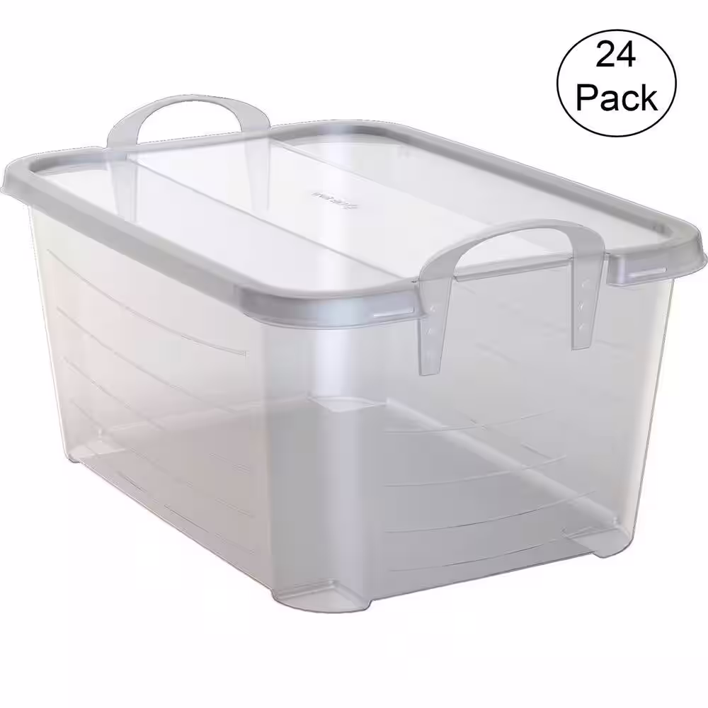 None 12 qt. Plastic Storage Bin with Lid in Clear (6-Pack)