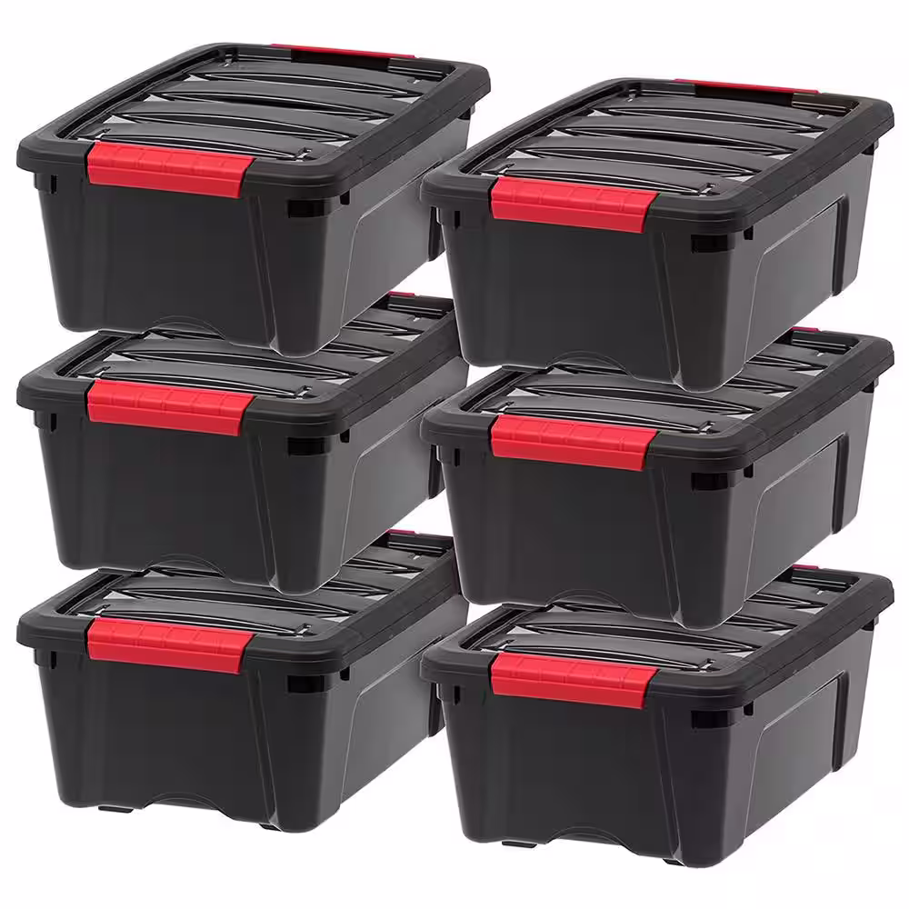 None 12 qt. Plastic Storage Bin with Lid in Black (6-Pack)