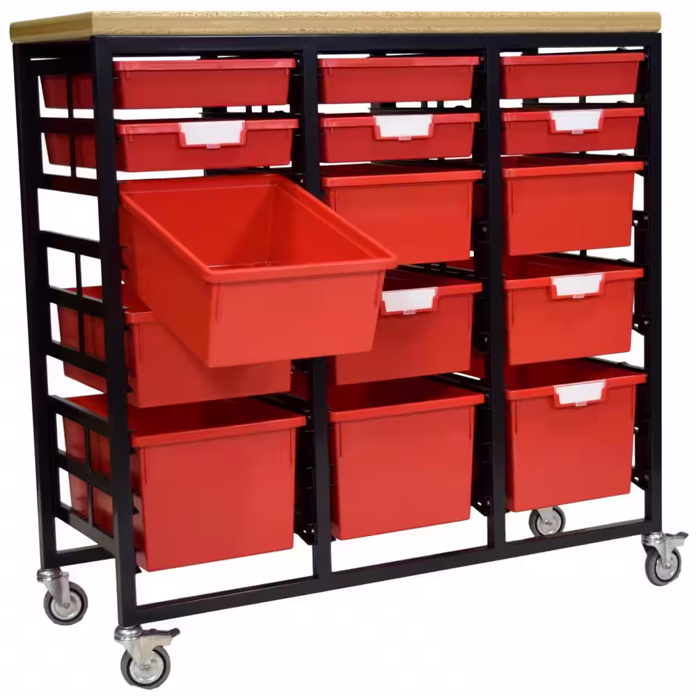 None Mobile Workbench Storage Station With Wood Top -15 StorSystem Trays-Red