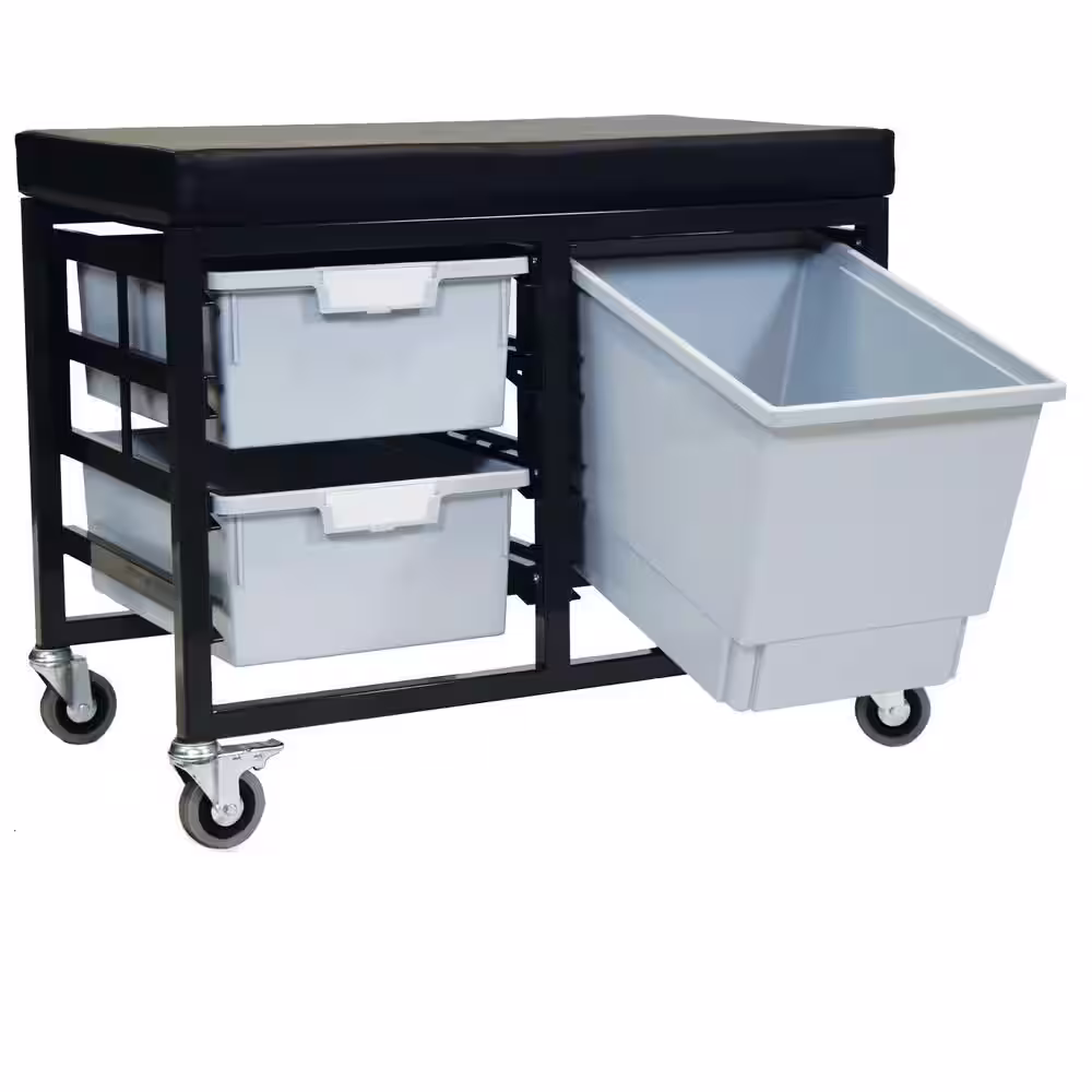 None StorBenchSeat With Cushioned Seat and 3 Storsystem Trays and Bins-Gray