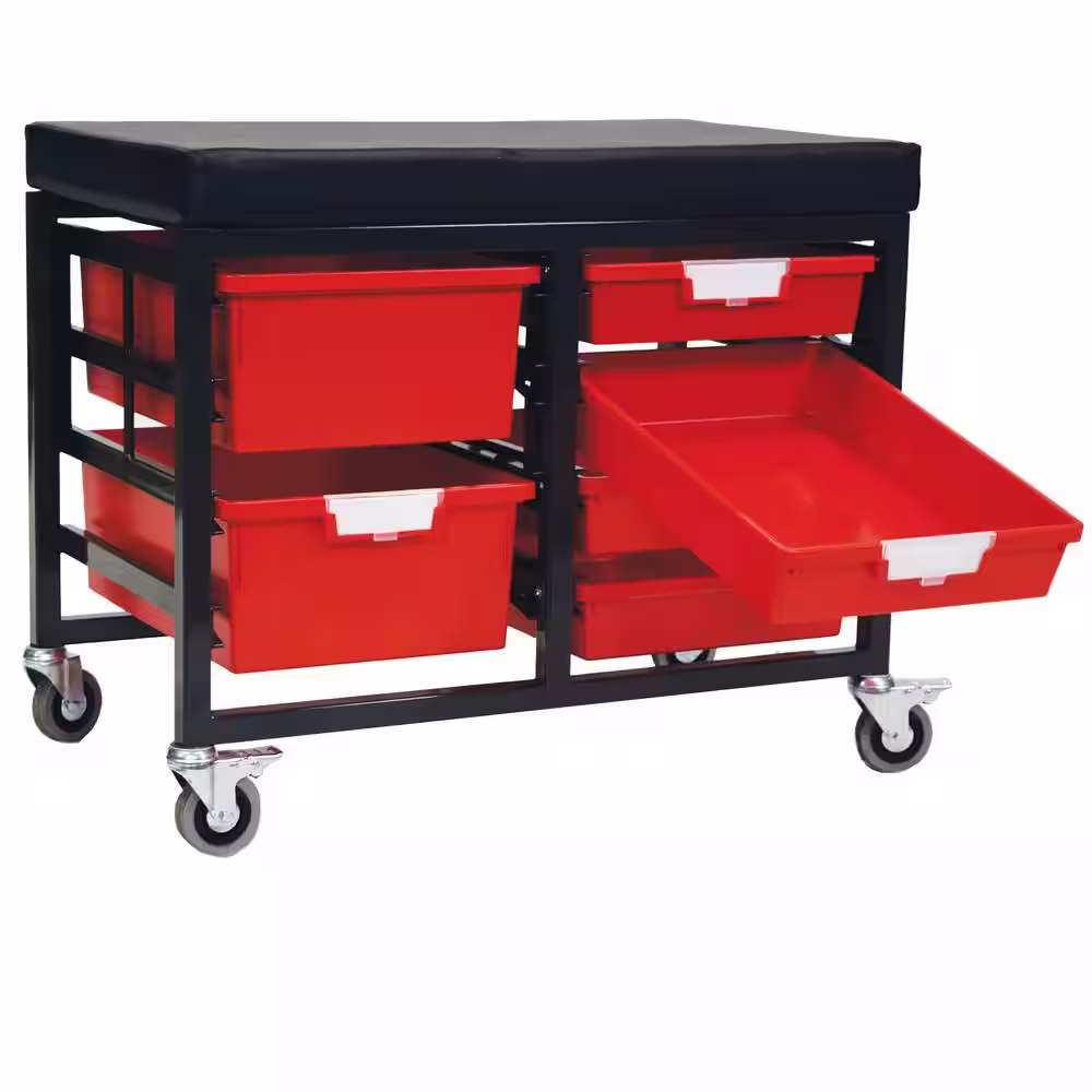None StorBenchSeat With Cushioned Seat and 6 Storsystem Trays and Bins-Red