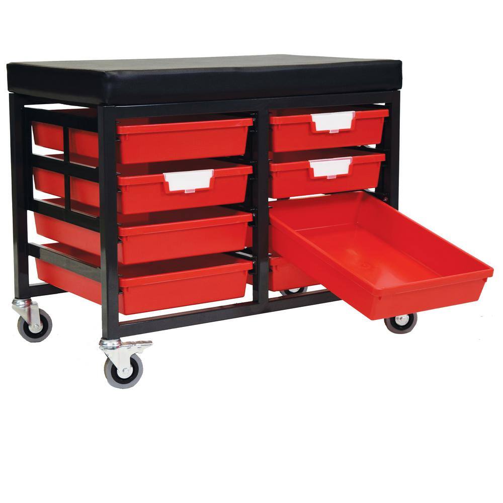 None StorBenchSeat With Cushioned Seat and 8 Storsystem Trays and Bins-Red