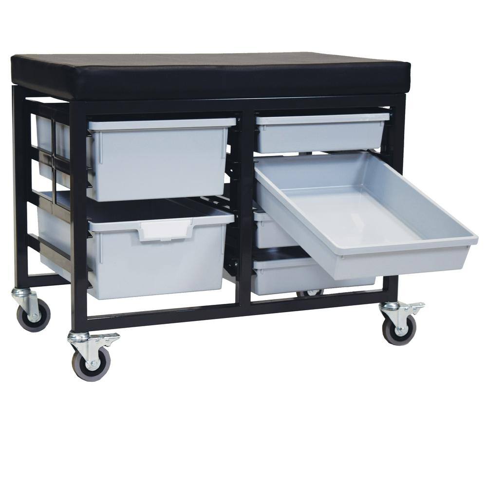 None StorBenchSeat With Cushioned Seat and 6 Storsystem Trays and Bins-Gray