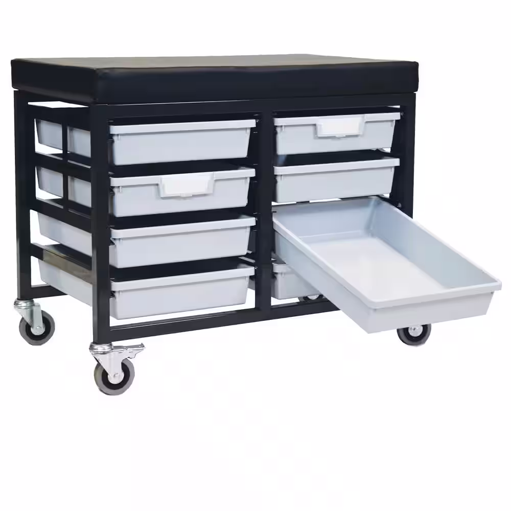 None StorBenchSeat With Cushioned Seat and 8 Storsystem Trays and Bins-Gray