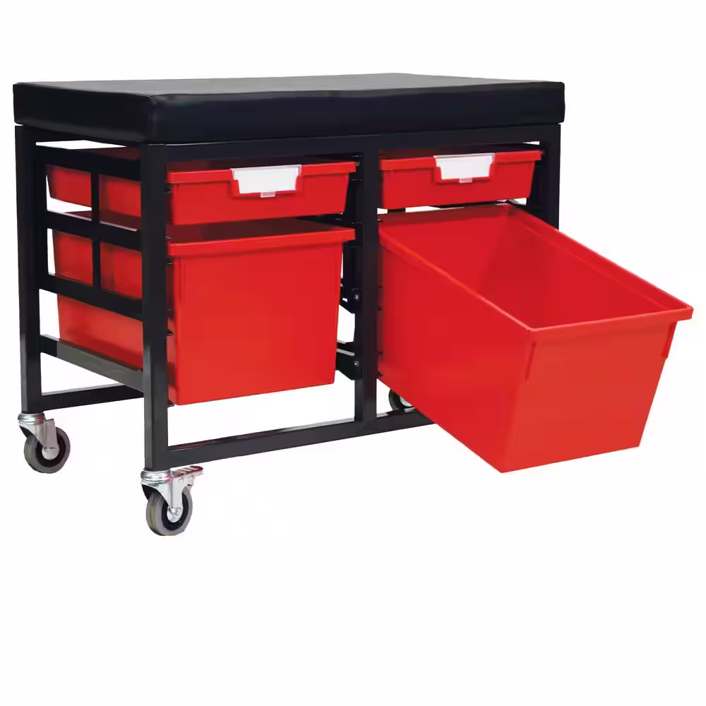 None StorBenchSeat With Cushioned Seat and 3 Storsystem Trays and Bins-Red