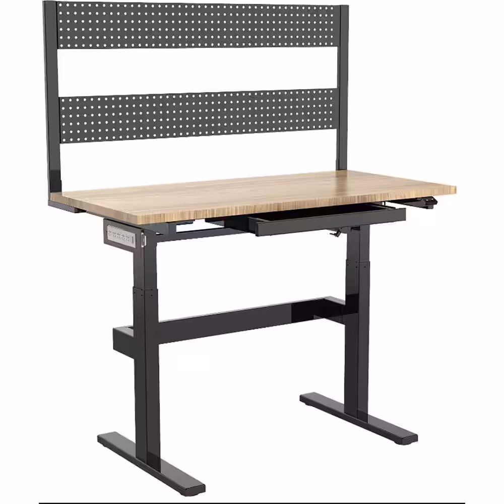 Hanover 24 in. Natural Wood Motorized Work Bench with Adjustable Heights and Peg Board