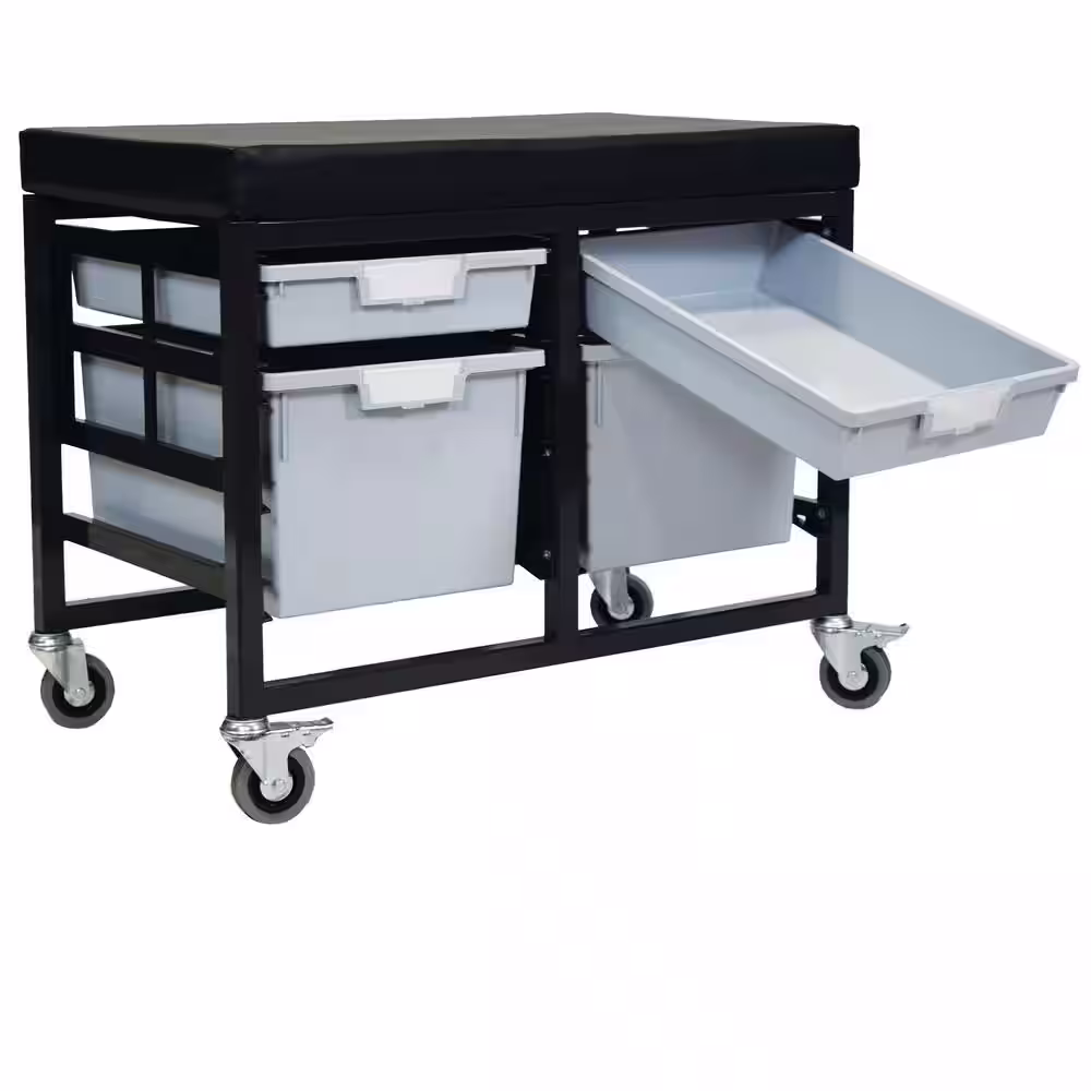 None StorBenchSeat With Cushioned Seat and 4 Storsystem Trays and Bins-Gray