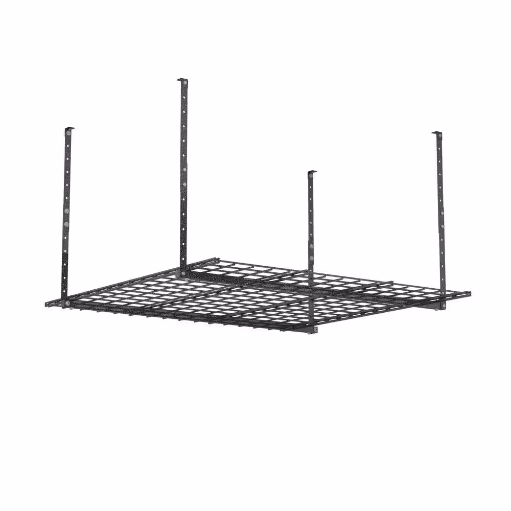 FLEXIMOUNTS Adjustable Height Overhead Ceiling Mount Garage Rack in Black (72 in. W x 48 in. D)