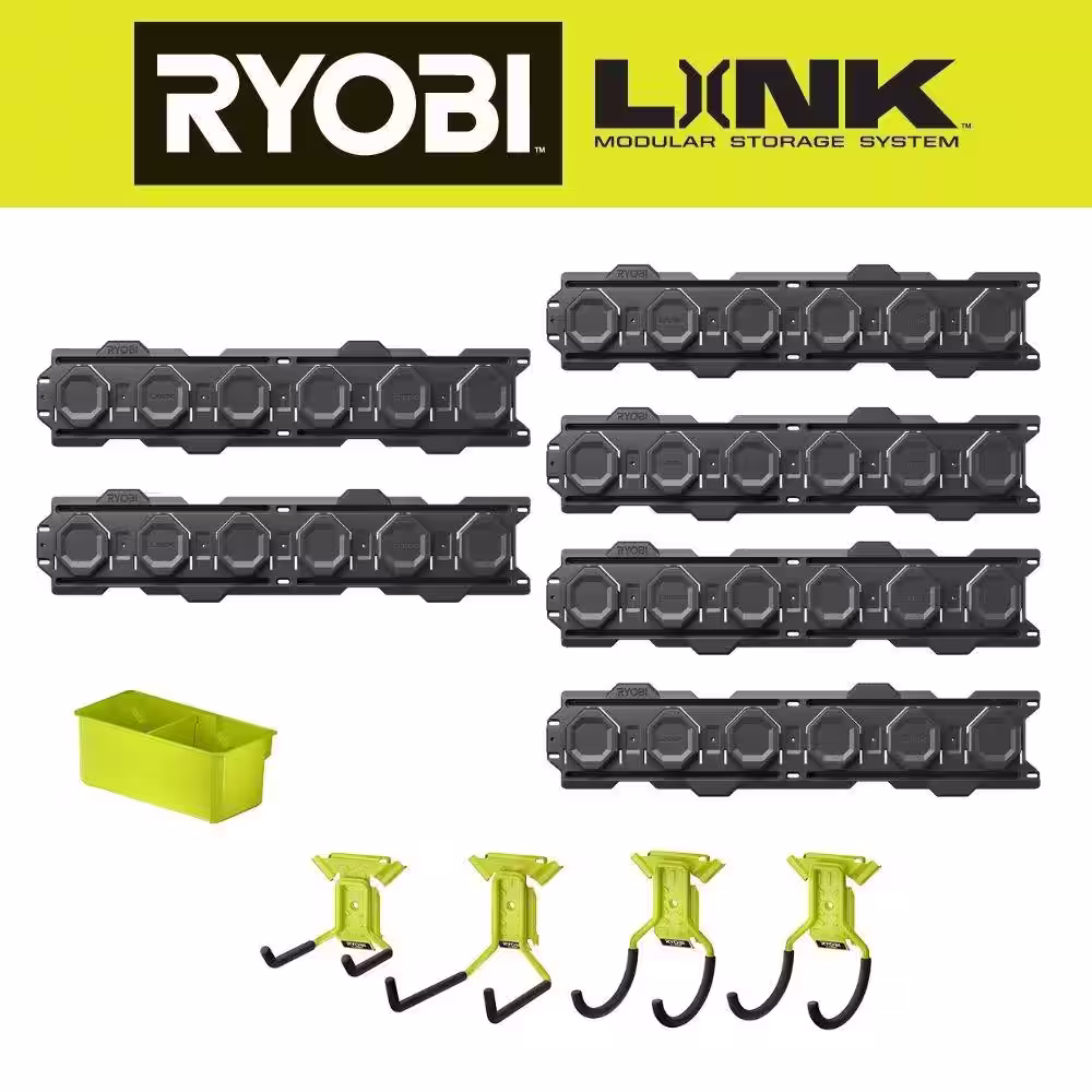 RYOBI LINK 7-Piece Wall Storage Kit with LINK Wall Rail (2-Pack) and Free LINK Wall Rail (2-Pack)