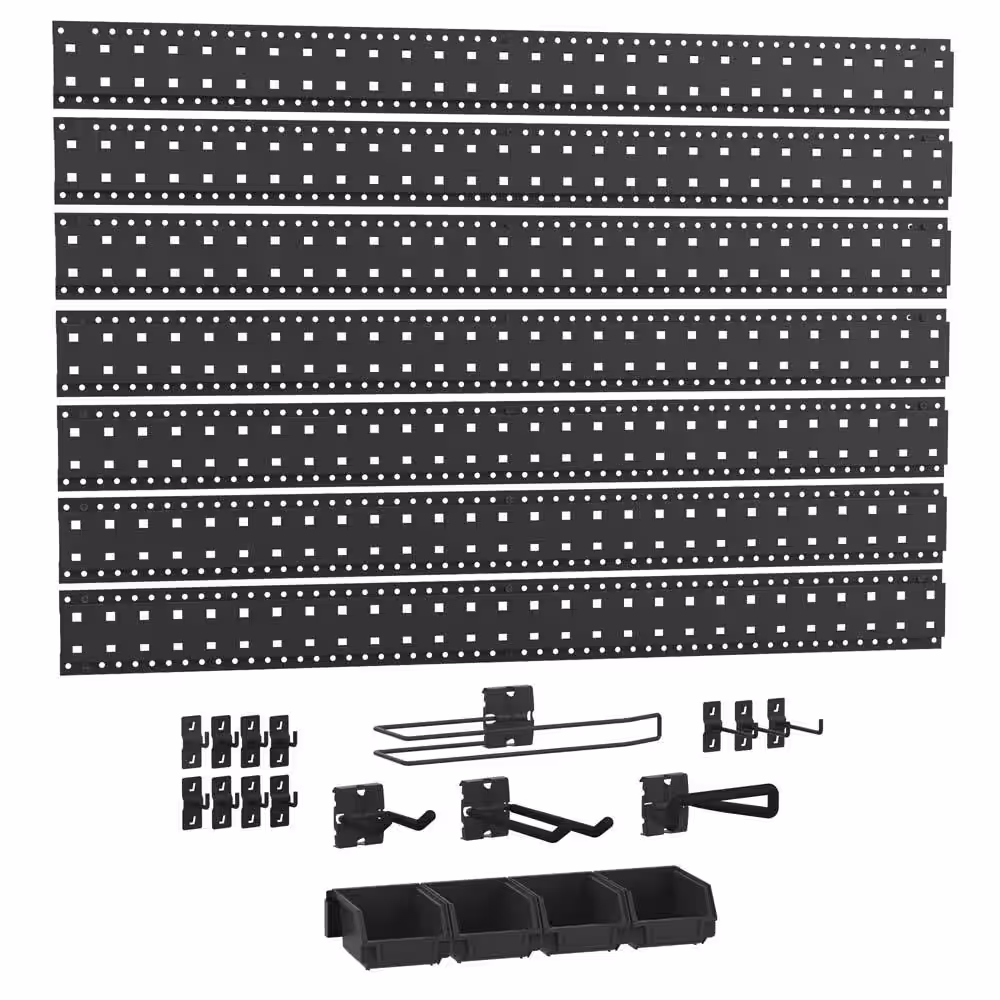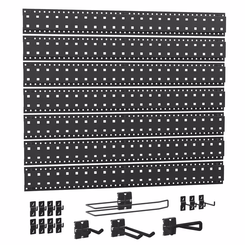 ClosetMaid ProGarage Black Metal 21.6 in. H x 42 in. W Slatwall Panel System with Accessories (27 Piece)