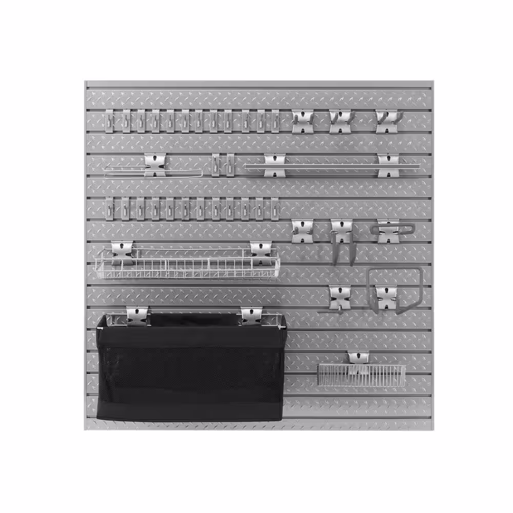NewAge Products Pro Series 3.0 16 sq. ft. 48 in. W x 24 in. H Steel Slatwall with Backsplash Hook Kit - Large (40-piece)