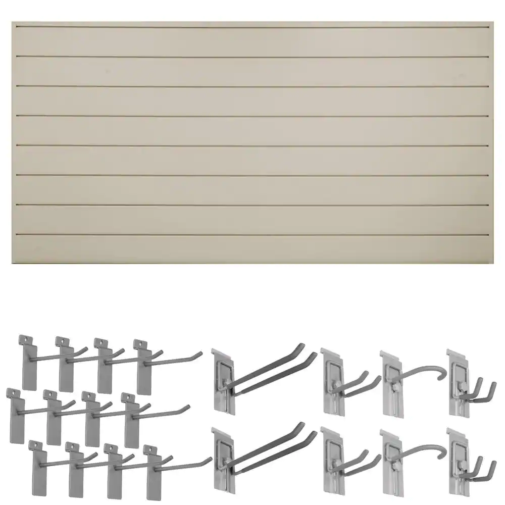 CROWNWALL 48 in. H x 96 in. W Basic Bundle PVC Slatwall Panel Set with Locking Hook Kit in Sandstone (20-Piece)