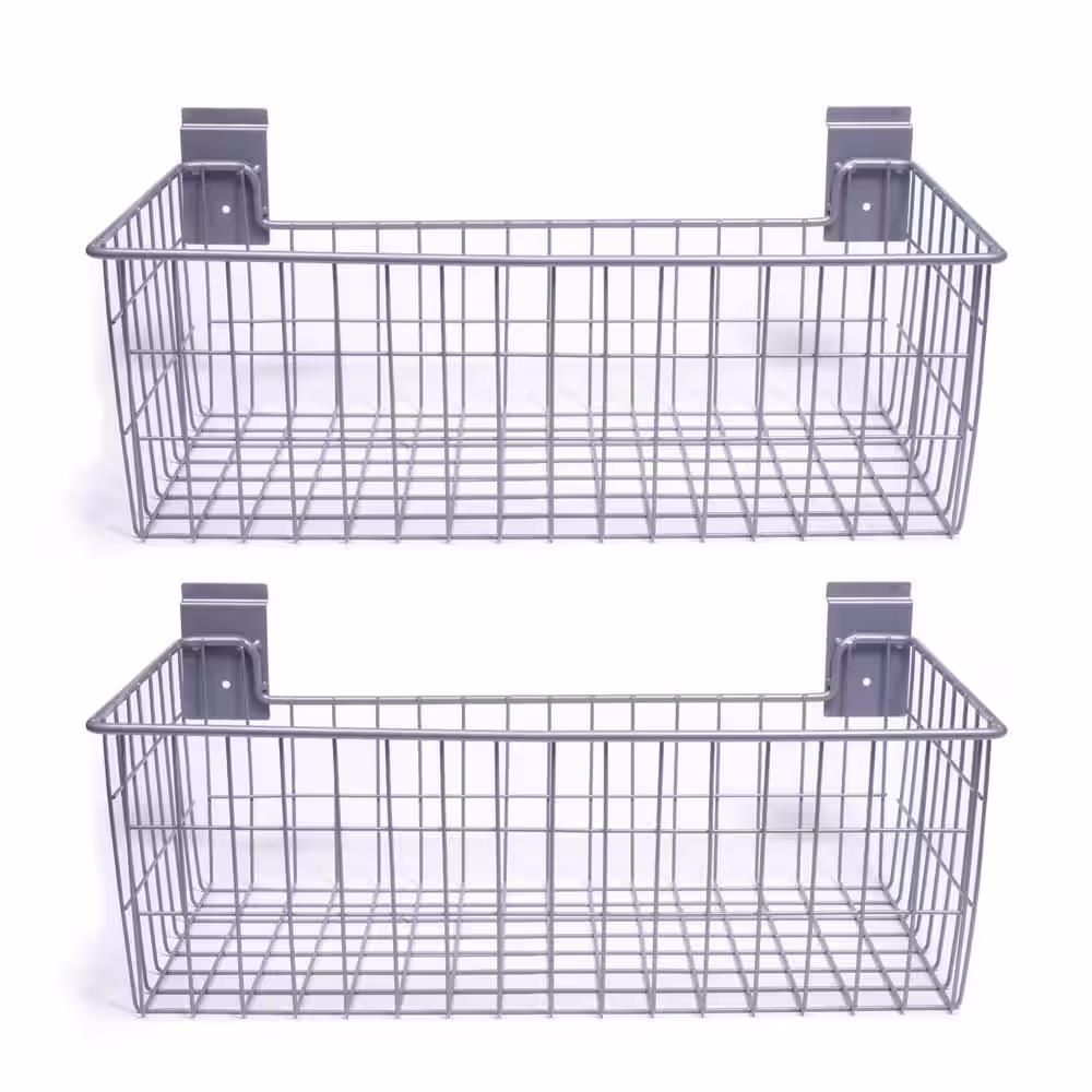 CROWNWALL 24 in. L x 12 in. W Slatwall Deep Wire Basket (2-Pack)