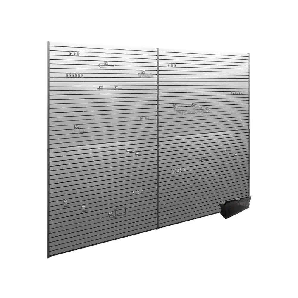 NewAge Products 71.75 in. H x 240 in. W PVC Slat Wall Panel Set in Silver with 40-Piece Accessory Kit (120 sq. ft.)