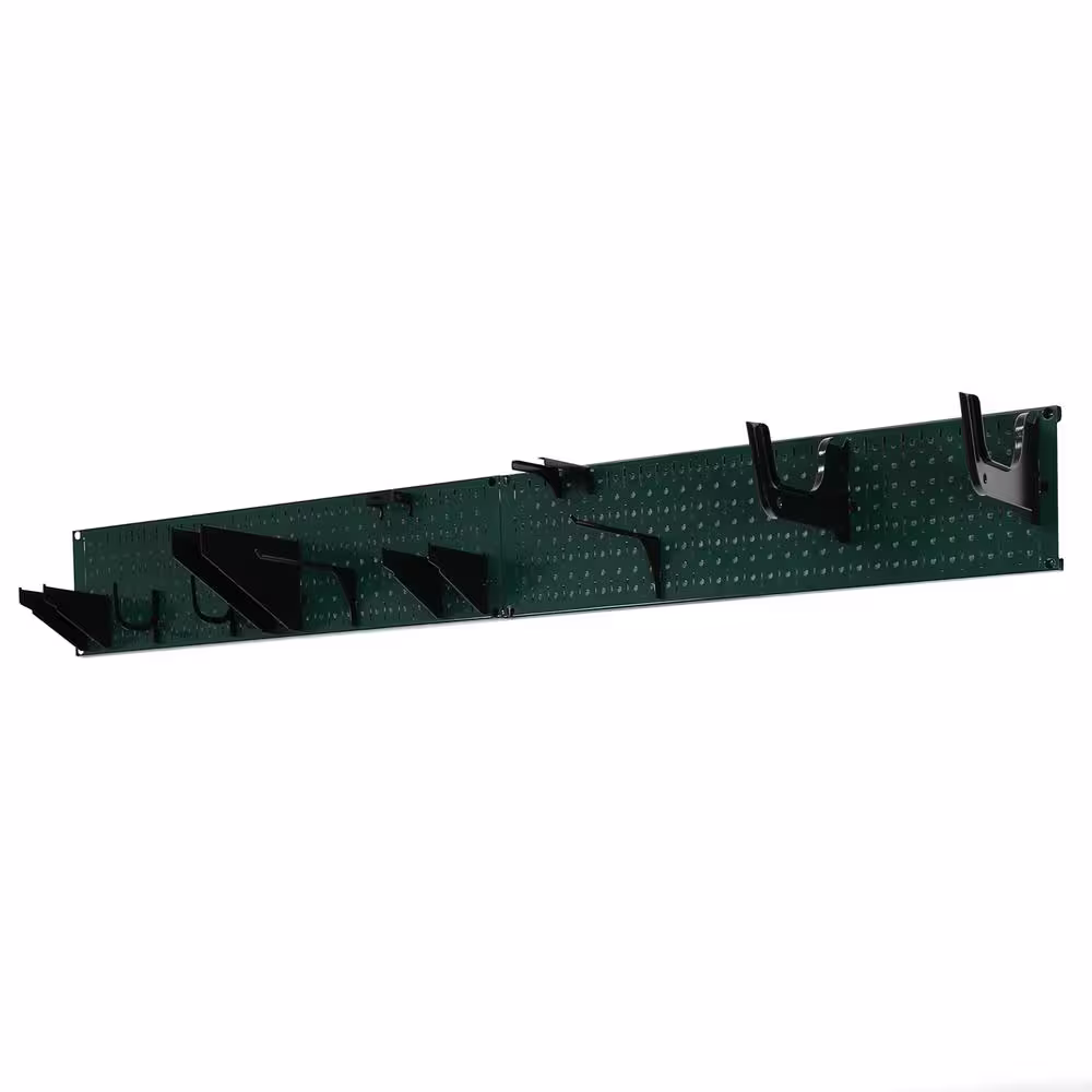 Wall Control 8 in. H x 64 in. W Garage Tool Storage Lawn and Garden Tool Organizer Rack with Green Metal Peg Board and Black Hook Set