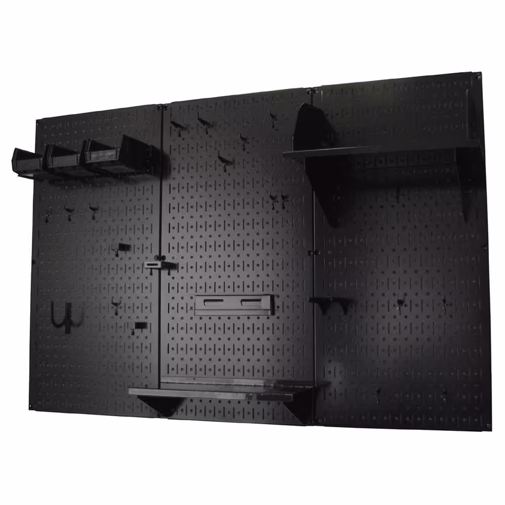 Wall Control 32 in. x 48 in. Metal Pegboard Standard Tool Storage Kit with Black Pegboard and Black Peg Accessories