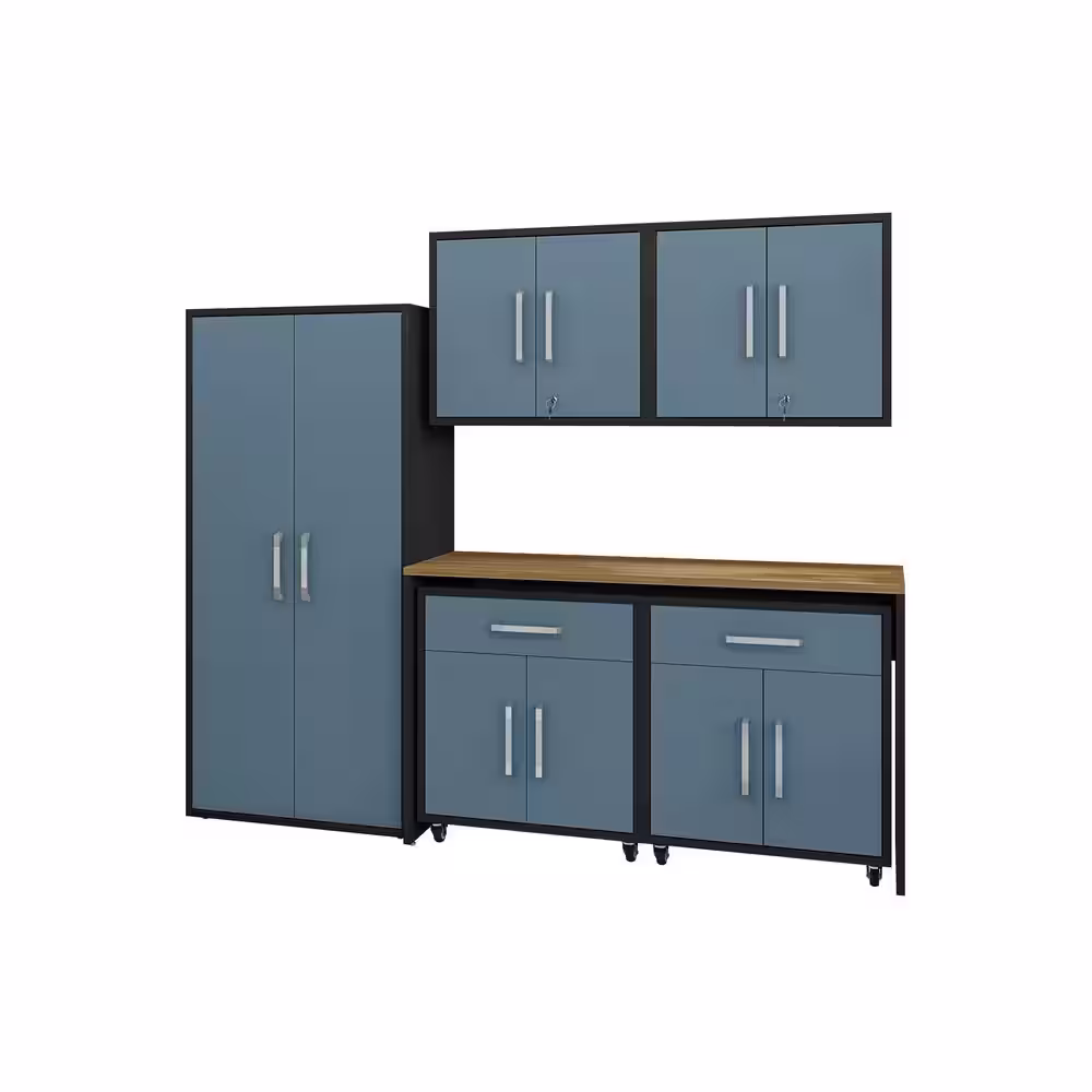 Manhattan Comfort Eiffel 95.27 in. W x 73.43 in. H x 19.69 in. D Garage Storage System in Matte Black and Aqua Blue (6-Piece)
