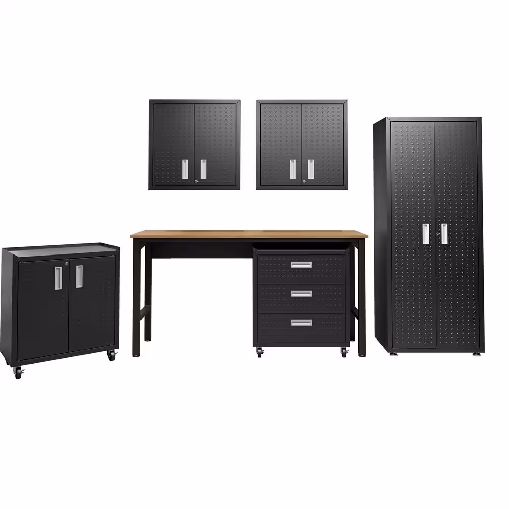 Manhattan Comfort Fortress 102.7 in. W x 74.8 in. H x 18.2 in. D Steel Garage Storage System in Charcoal Grey (6-Piece)