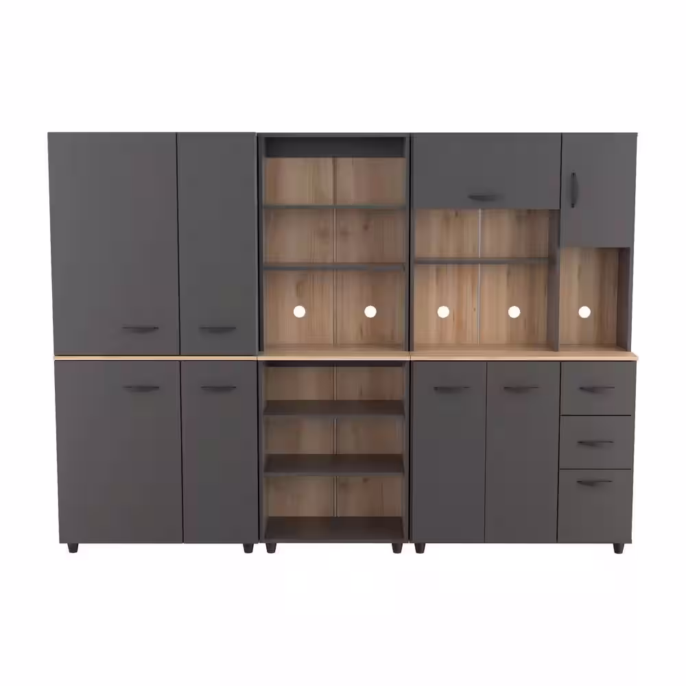Inval Proforte 90.1 in. W x 66.1 in. H x 15.4 in. D Garage Storage System in Dark Gray and Maple (3-Piece)