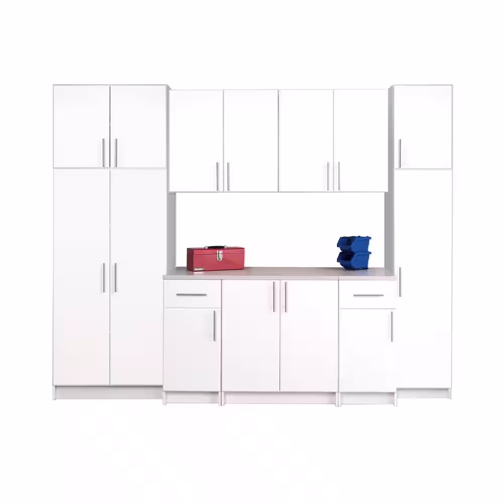 Prepac Elite 9-Piece Composite Garage Storage System in White (112 in. W x 89 in. H x 24 in. D)