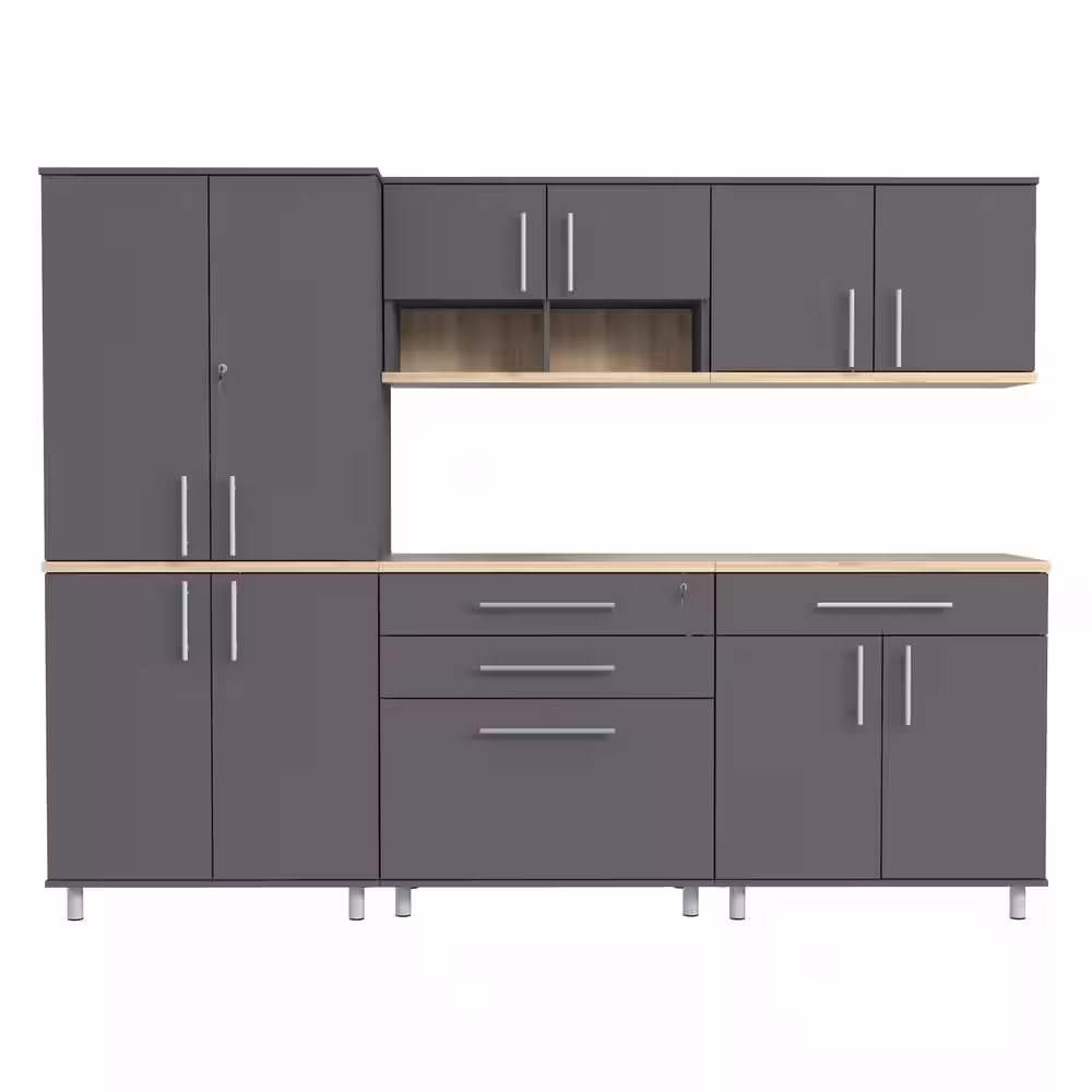 Inval KRATOS 6-Piece Garage Storage System in Dark Gray and Maple (126 in. W x 70.8 in. H x 19.6 in. D)