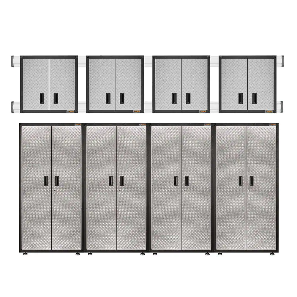 Gladiator 8-Piece Steel Garage Storage System in Silver Tread Plate (144 in. W x 100 in. H x 18 in. D)