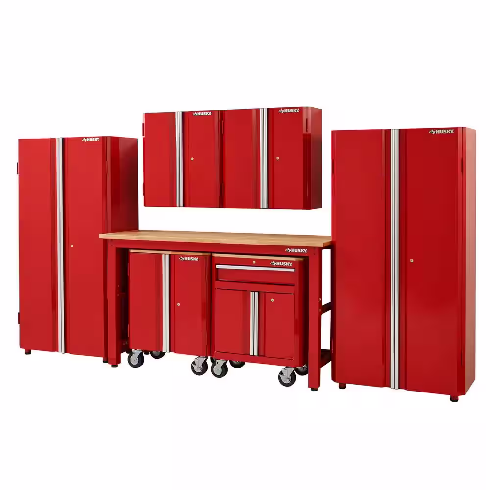 Husky 7-Piece Ready-to-Assemble Steel Garage Storage System in Red (145 in. W x 98 in. H x 24 in. D )
