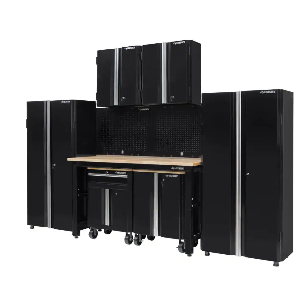 Husky 8-Piece Heavy Duty Welded Steel Garage Storage System in Black (184 in. W x 81 in. H x 24 in. D)