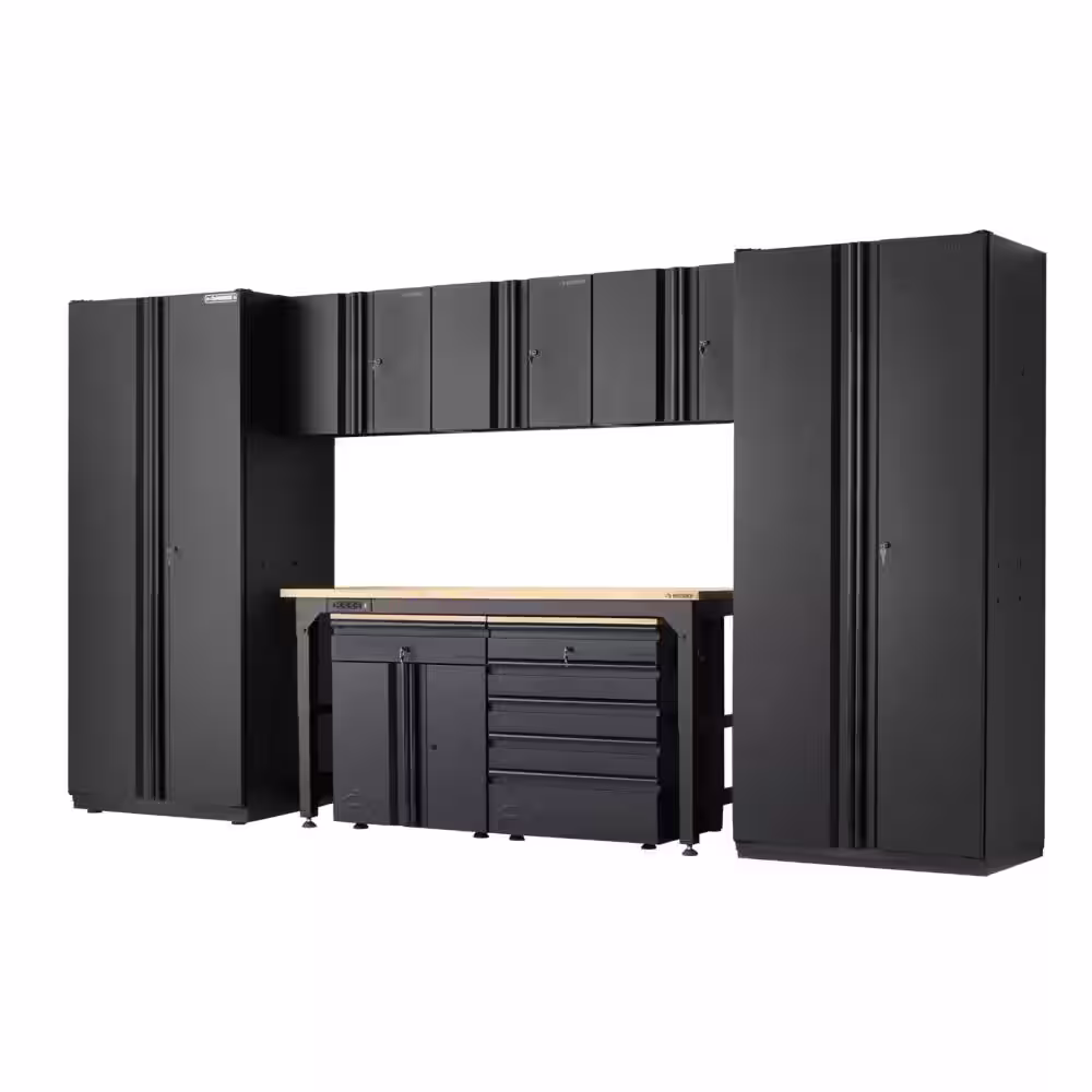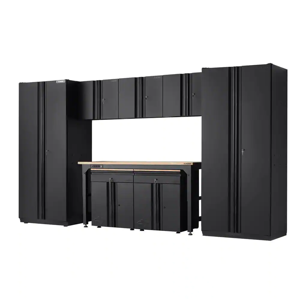 Husky 8-Piece Heavy Duty Welded Steel Garage Storage System in Black (156 in. W x 81 in. H x 24 in. D)