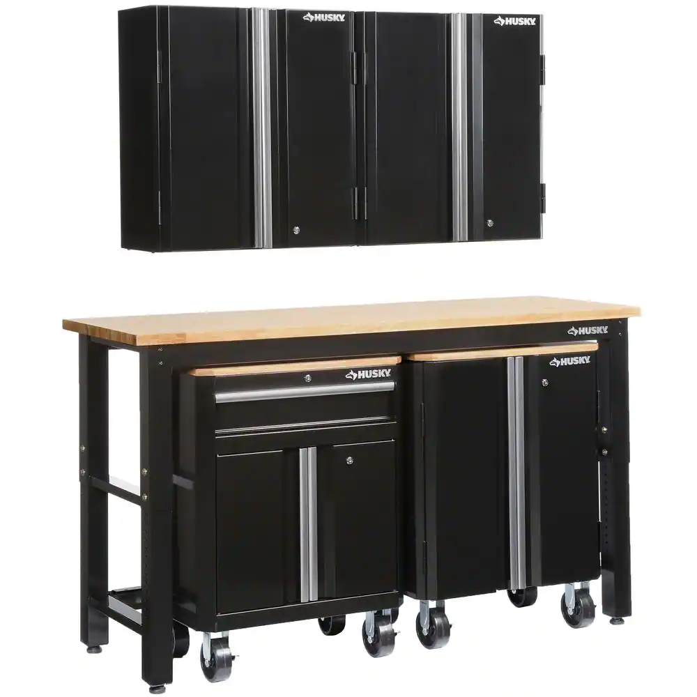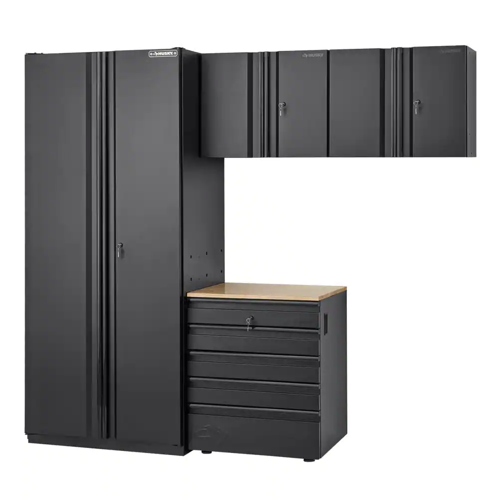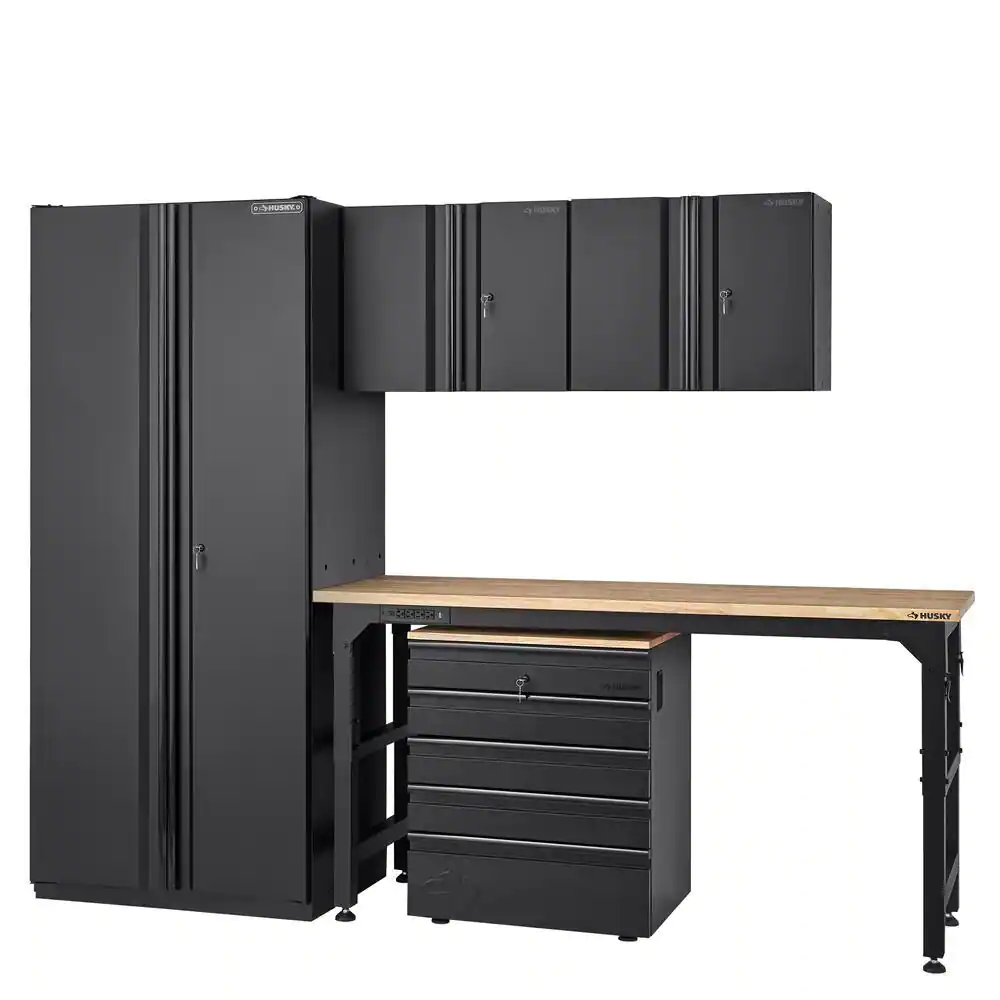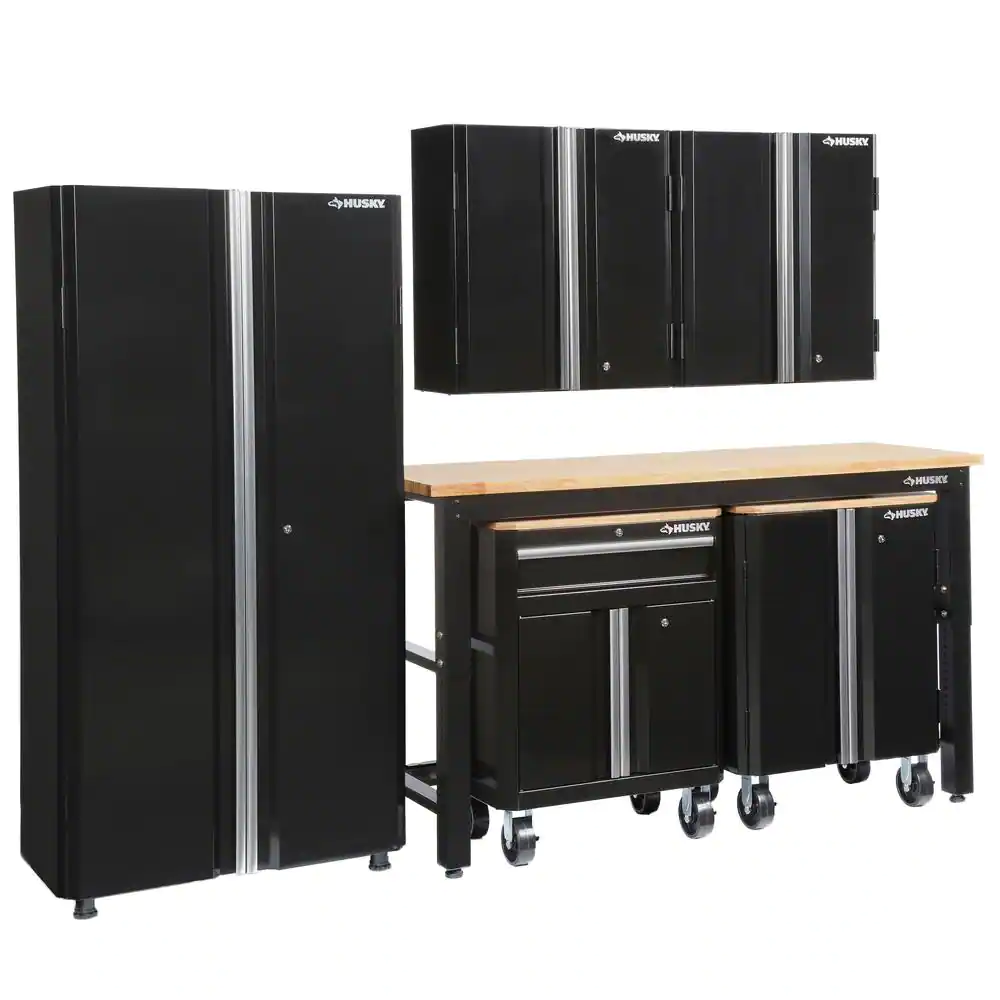 Husky 6-Piece Pro Duty Welded Steel Garage Storage System in Black LINE-X Coating (128 in. W x 81 in. H x 24 in. D)