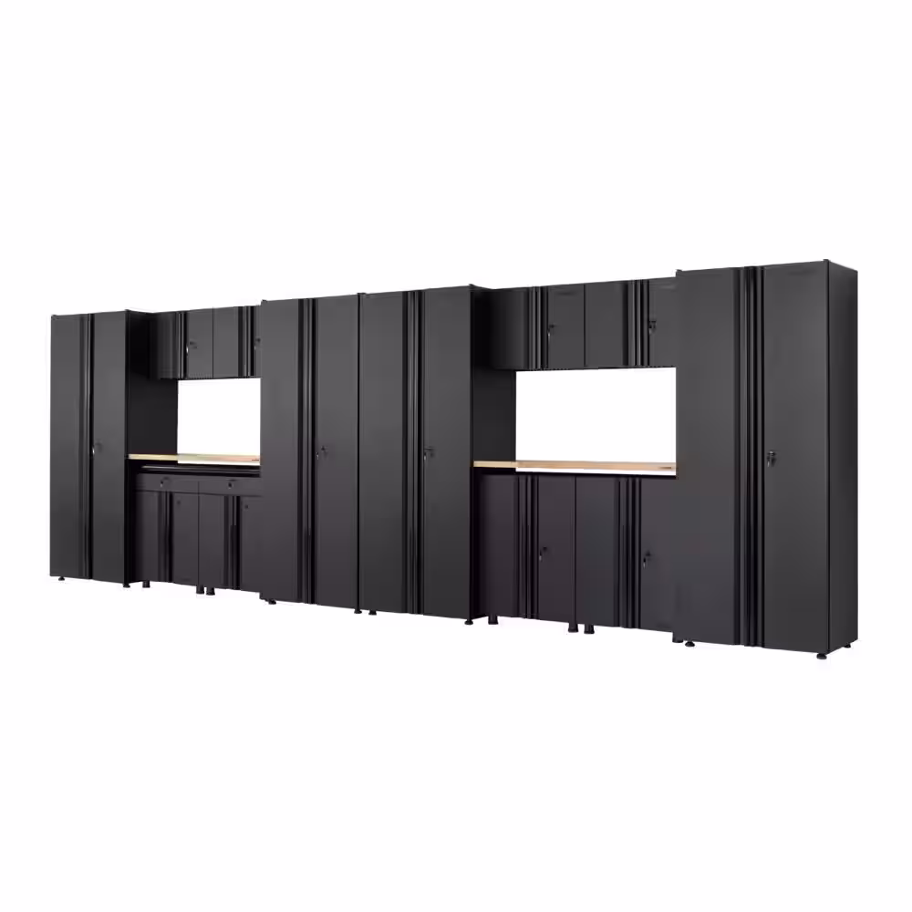 Husky 14-Piece Regular Duty Welded Steel Garage Storage System in Black (218 in. W x 75 in. H x 19.6 in. D)
