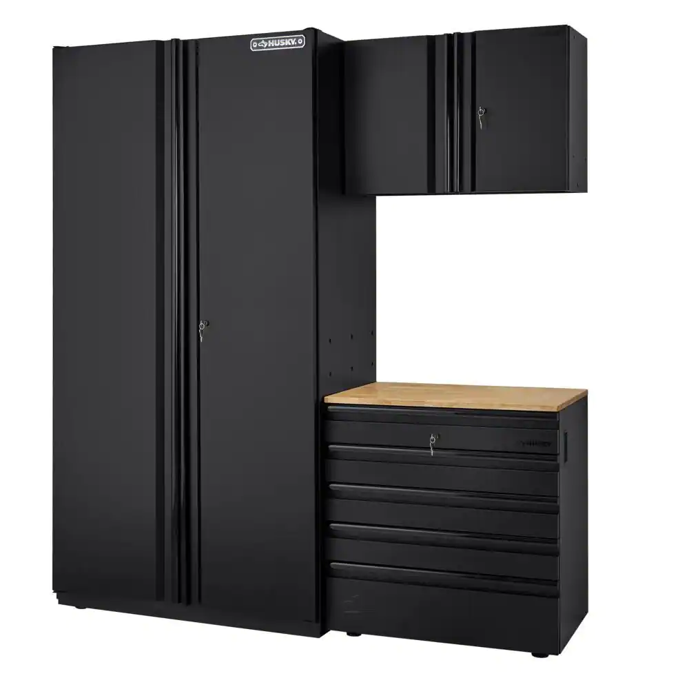 Husky 3-Piece Pro Duty Welded Steel Garage Storage System in Black LINE-X Coating (64 in. W x 81 in. H x 24 in. D)