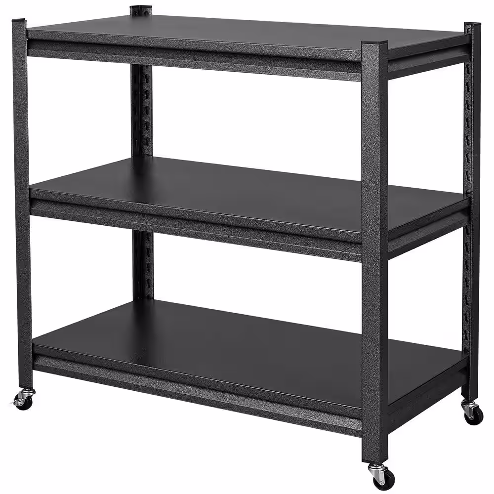 Mlezan Metal Garage Storage Shelves 3 Tier with Wheels Black Rack in 17.7 in. D x 33.9 in. W x 31.5 in. H