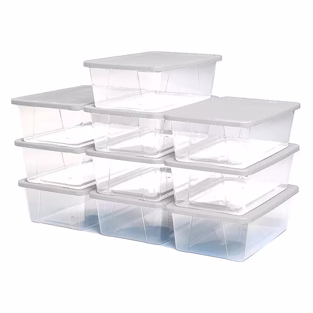 HOMZ 6 Qt. Secure Latching Clear Plastic Storage Container Bin w/Lid (10-Pack)
