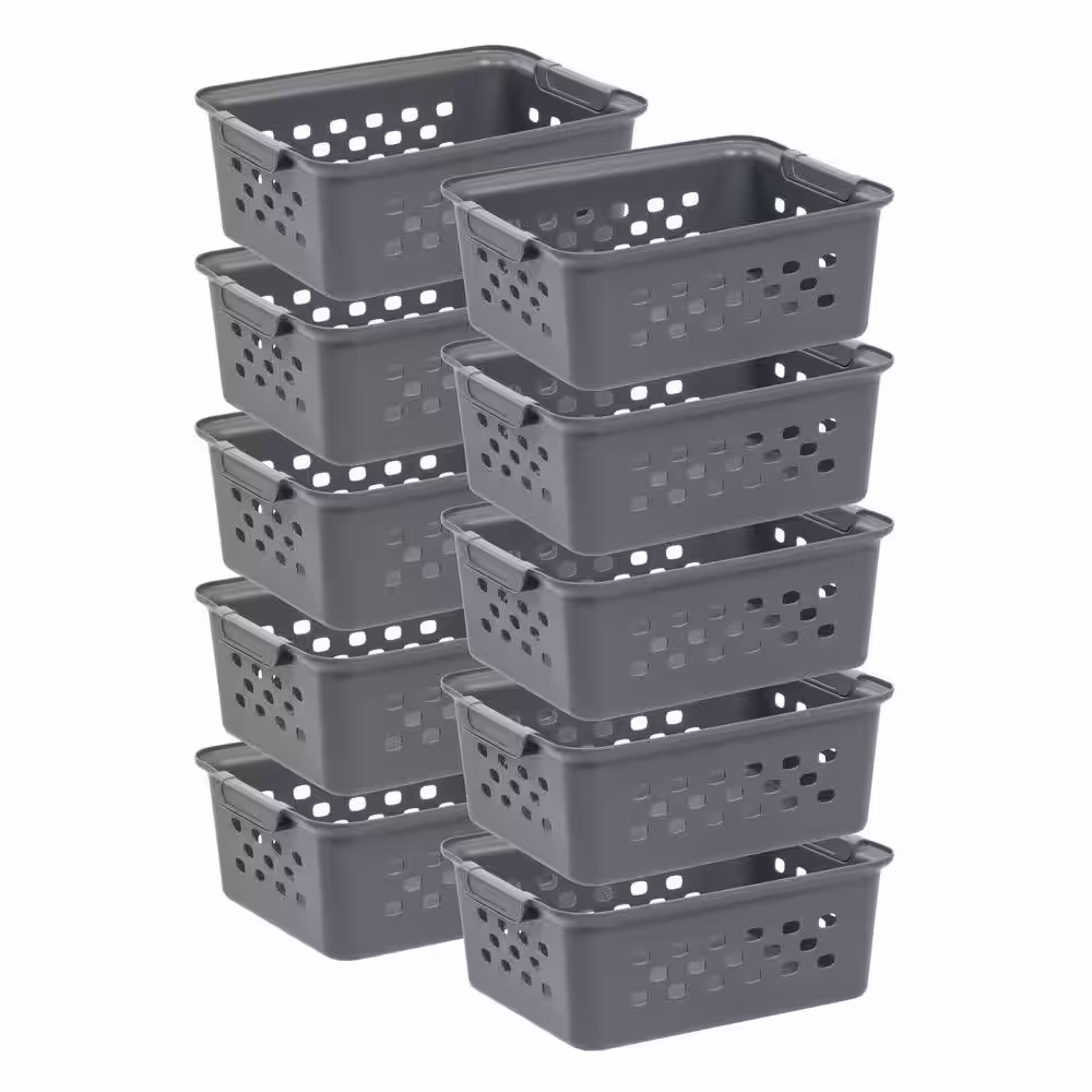 IRIS 7 qt. Organizer Storage Basket in Gray with Built in Handle (10-Pack)
