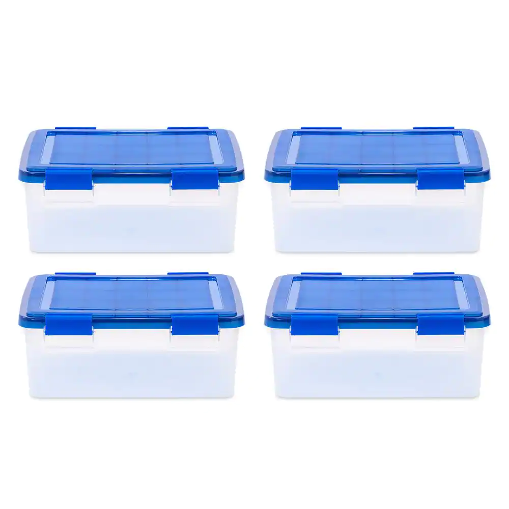 IRIS 7.5 Gal. WeatherPro Clear Plastic Storage Box with Blue Lid (4-Pack)