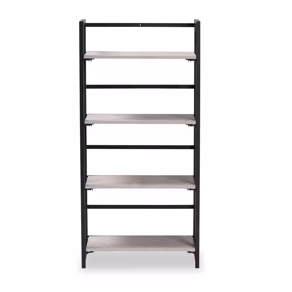 Baxton Studio Lakota Light Grey and Black 4-Tier Metal Shelving Unit (23.6 in. W x 49.2 in. H x 11.8 in. D)