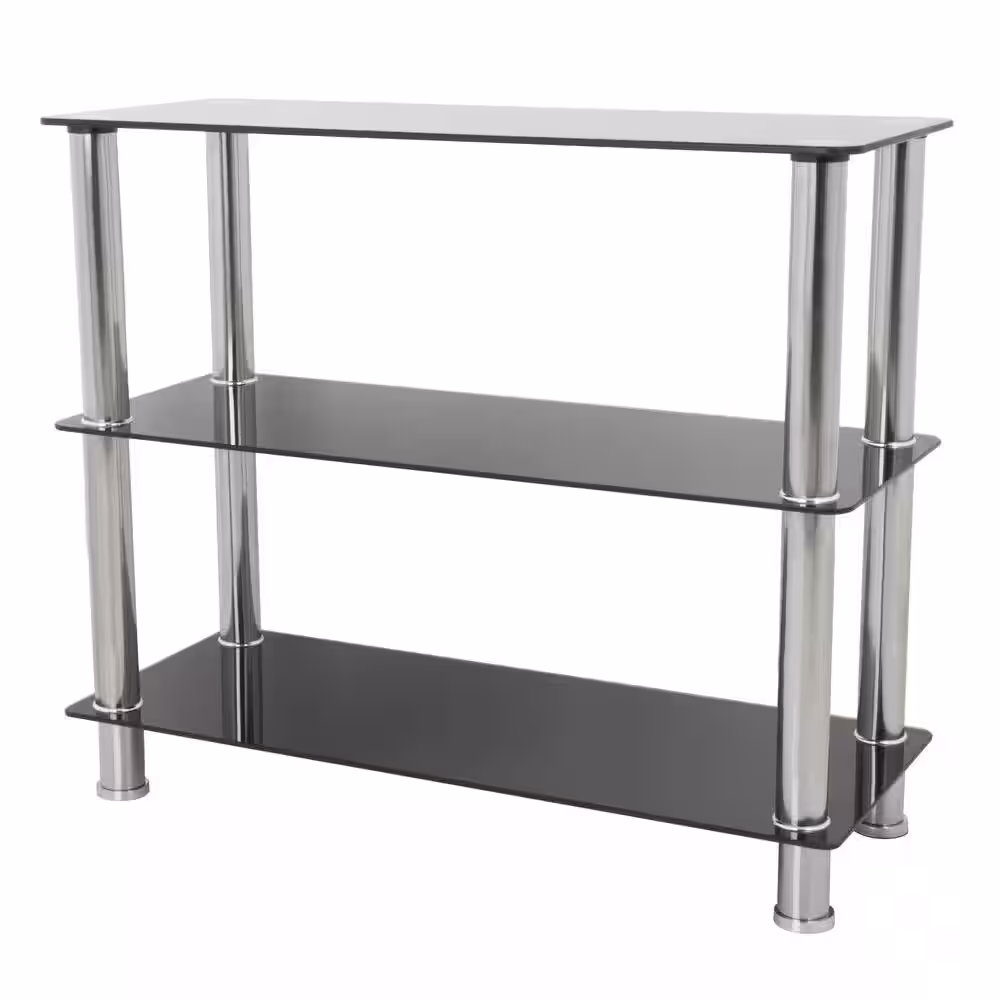 AVF Wide 3-Tier Shelving Unit in Black Glass and Chrome