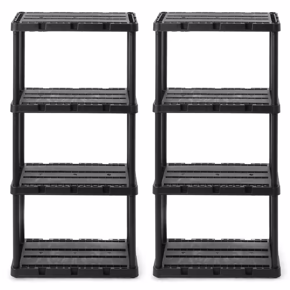 GRACIOUS LIVING 4 Shelf Knect-A-Shelf Solid Light Duty Storage Unit, W 12 in. x H 48 in. x D 24 in., Resin Frame Material, Black 2 Pck