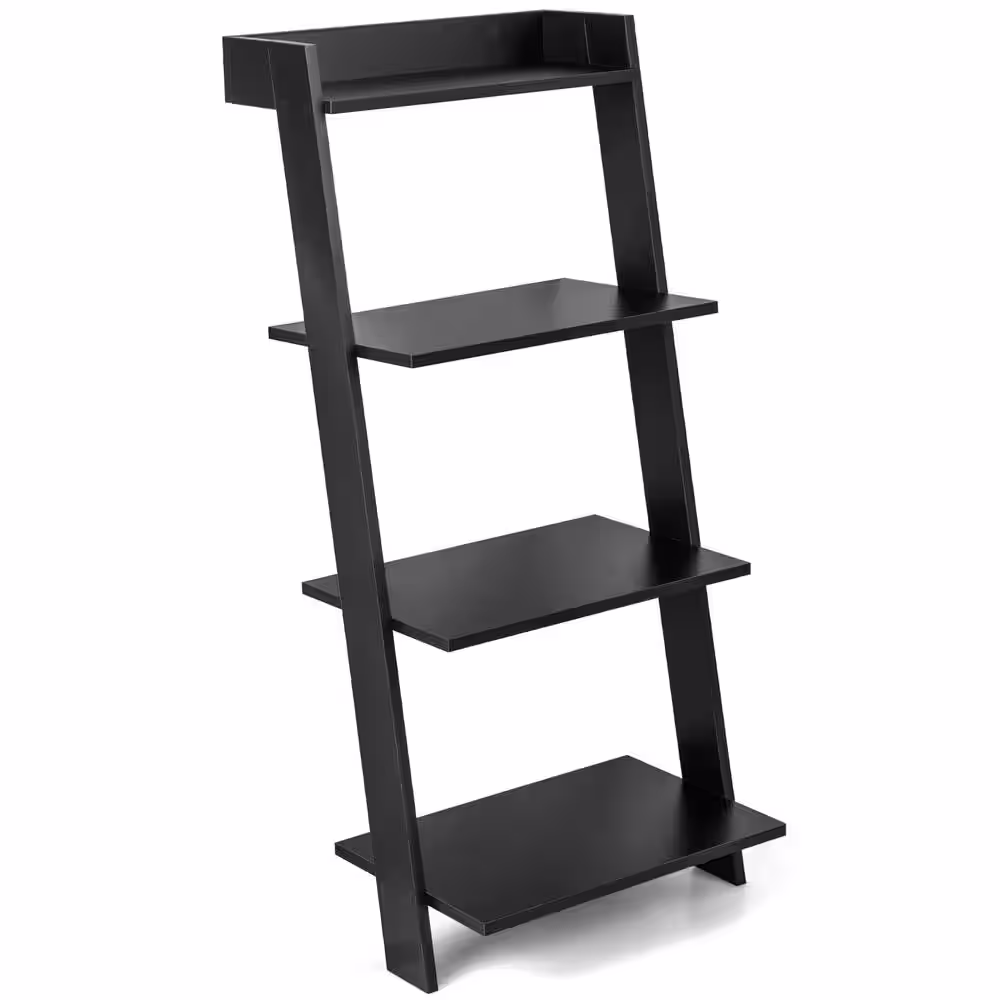 HONEY JOY 19.5 in. W x 43 in. H x 17.5 in. D Black 4-Tier Ladder Shelf Wooden Leaning Bookshelf Display Rack Modern Shelving Unit