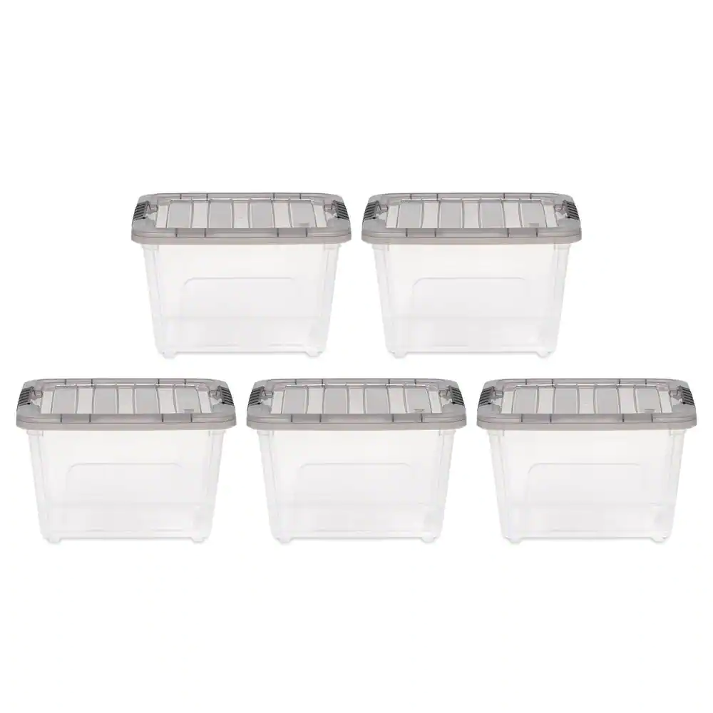 None 19 qt. Stack & Pull Clear Plastic storage Box, Lid Gray (Pack of 5)
