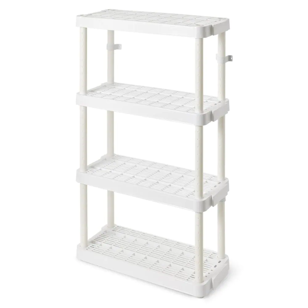 GRACIOUS LIVING 4 Shelf Adjustable Ventilated Medium Duty Shelving Unit, White, 14 x 32 x 54.5 inches