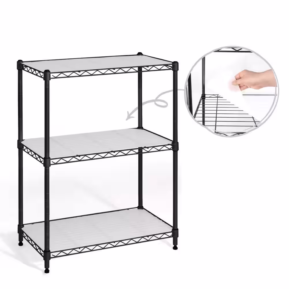None Black 3-Tier Adjustable Height Welded Steel Garage Storage Shelving Unit with Liner (24 in. W x 30 in. H x 14 in. D)