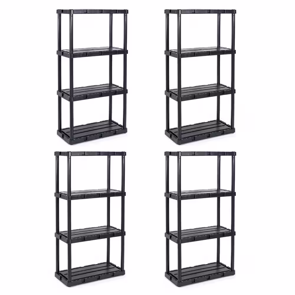 GRACIOUS LIVING 12 in. W x 33 in. H x 24 in. D Plastic Knect A Shelf Light Fixed Storage 4-Shelf Shelving Unit (4-Pack)