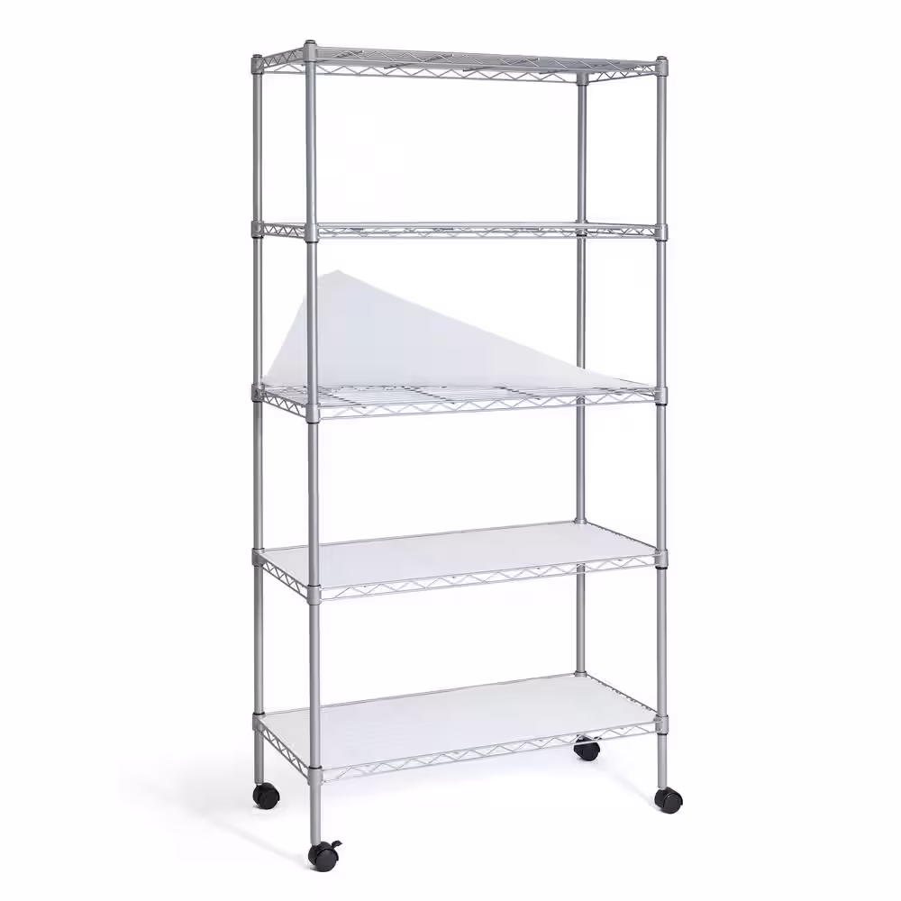None Grey 5-Tier Adjustable Height Welded Garage Storage Shelving Unit with Liner/Wheels (30 in. W x 61 in. H x 14 in. D)