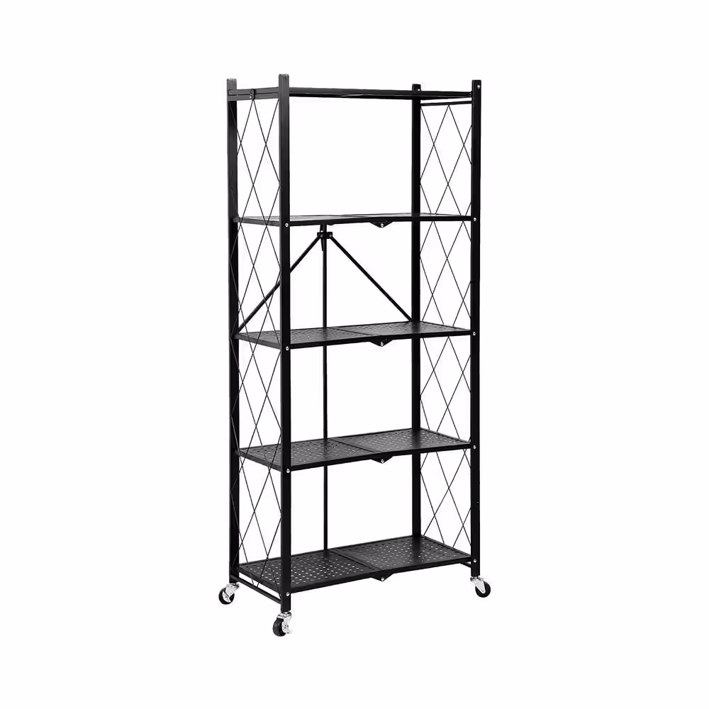 None Black Rolling 3-Tier Iron Wire Heavy Duty Foldable Storage Shelving Unit (27.5 in. W x 31 in. H x 13.5 in. D)