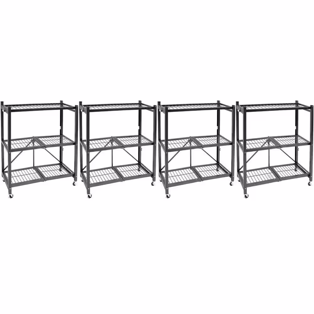 Origami 13.3 in. x 28.75 in. x 35.4 in. R3 Foldable Pewter 3-Tiered Shelving Unit Storage Rack and Wheels (4-Pack)